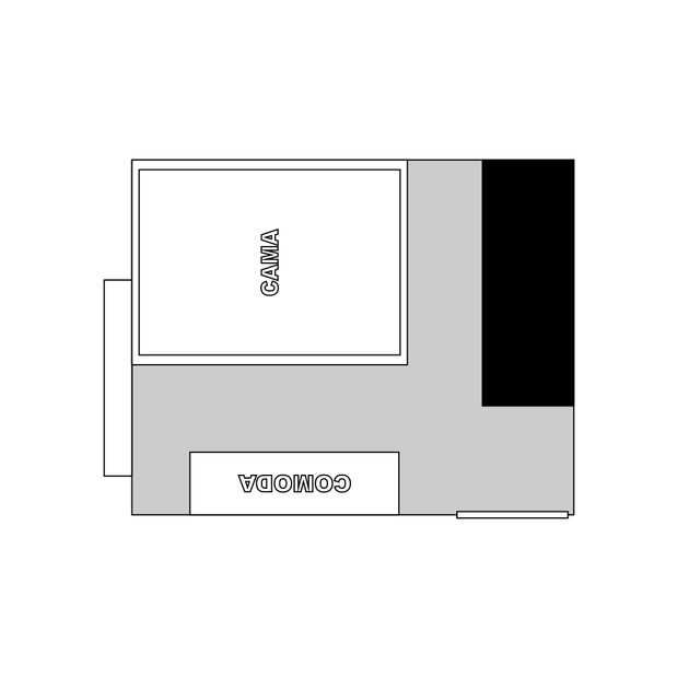 Trate de muebles diferentes y diversos arreglos. Dado que mi paleta de colores es solo negro, gris y blanco es más fácil escoger. Tan sólo hice un plan de 2D.