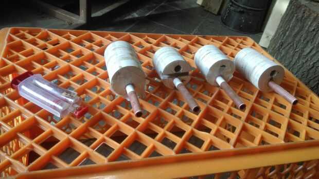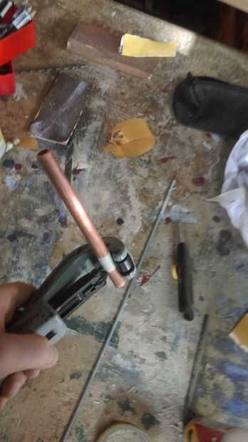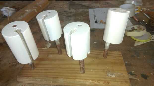 Pegar un tubo de cobre en los agujeros sin una muesca. (Yo usé pegamento de epoxi, dos componentes)