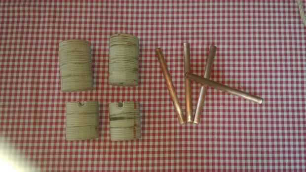 Perfore dos agujeros (tan amplia como el tubo de cobre) en cada una de las 4 partes.