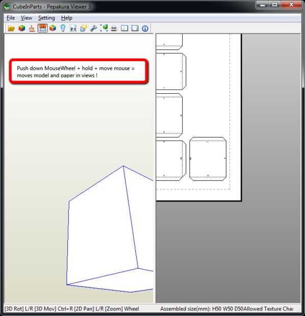 Modelo de movimiento / papel: empuje + mantener la rueda del ratón + mover ratón (o clic derecho en la vista 3D)