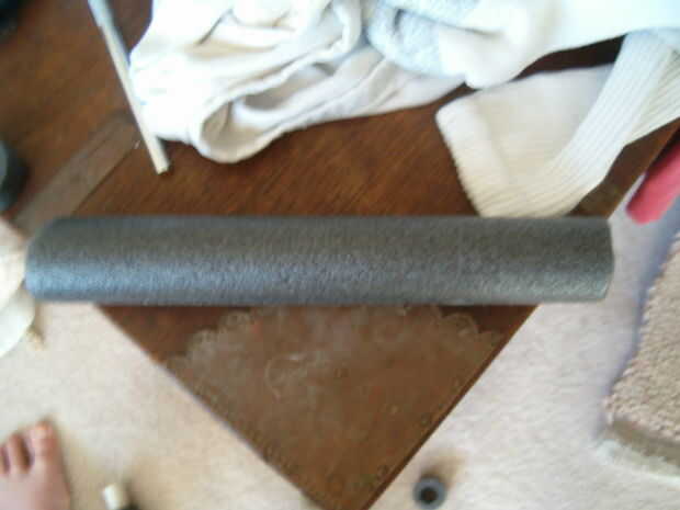 Ahora vas a la parte media que siempre ves gente bloqueando con cuando ellos mástil (como se muestra a continuación). Primero vas a extraer la parte media y deslizamiento más aislamiento sobre él, y luego hace lo que hizo en el paso 3 y corta el aislamiento hasta su descarga con el tubo, como se muestra en la figura 2. Luego tomar su Exacto y corte sobre una pieza de 7/8 de espuma a ambos lados (cuadro 3). Vuelva a colocar la sección a su Bat'leth. Lo puedes hacer a la pieza interior también (como se muestra en la figura 4).