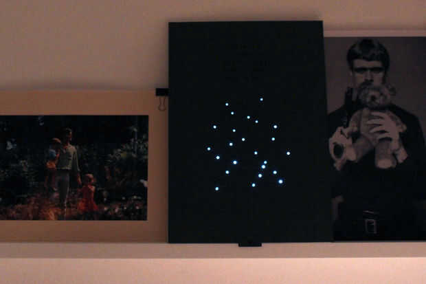 Me encontré con tinta conductiva en mi investigación y como un estudiante de diseño que empecé a cuestionar su uso en mis proyectos. Imaginaba un cartel con LEDs y tipografía donde la luz sería una ilustración del texto. Para este proyecto he elegido un texto de Sagan donde los LEDs evocan una galaxia.