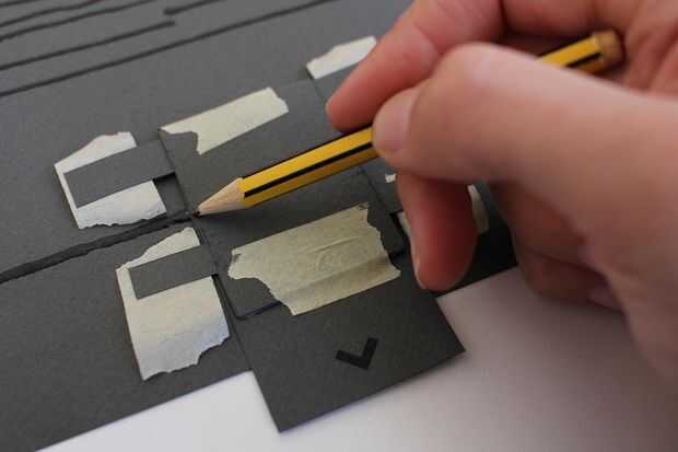 Tienes que dibujar la tinta conductiva para cerrar el circuito cuando el interruptor se tira hacia abajo. Espere hasta que la tinta se seque.