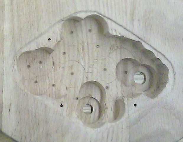 Al molino y la puso en un cortador de 1/4" o menos. Sujetar el cuerpo en el molino con la madera debajo. Compruebe que el cuerpo esté nivelada. Mover la herramienta de corte en el primer bolsillo recolección y elevar la cama hasta que la cuchilla toque la parte inferior. Ejecute la herramienta de corte alrededor del perímetro, para limpiar los bordes del bolsillo. Entrar en las secciones de la ficha de dos en los lados.