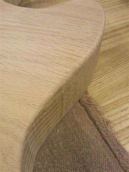 Use el raspador para aclarar las ondas ásperas y traer su madera derecha a la línea de lápiz. Trate de mantener los lados lo más recto posible y no utilizar el raspador en un ángulo.