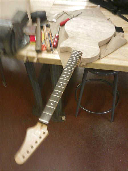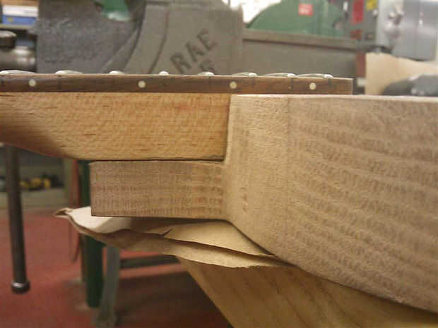 Tornillo del cuello en su lugar y ver cómo se ve! Si la alineación está desactivada, usted necesitará utilizar una ronda a archivo unos agujeros en el cuerpo y algunas astillas de madera en ellos para impulsar la alineación de nuevo recto de la cuña. Eso, o volver a dibujar la línea de centro.