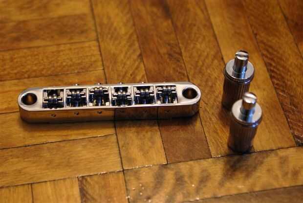 Una de sus pastillas probablemente tendrá un acorde más larga que la otra. Esta es la pastilla del cuello. Quitar las bobinas de recogida actuales (cromo) en la estructura de montaje (negra). Lugar la pastilla del puente en el centro de la línea así que hay aproximadamente media pulgada de espacio entre él y el bolsillo del cuello. Trace una línea alrededor de la camioneta de cromo así que podemos ver un esquema donde tenemos el bolsillo recolección del molino. Repita para la pastilla del puente, colocándolo alrededor de la mitad una pulgada antes del puente.