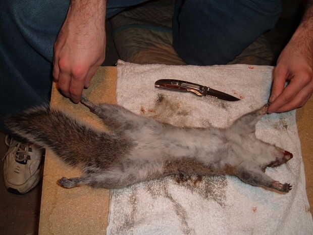 Tratar de difundir la ardilla tan plana como sea posible. Mortus de rigor puede haber puesto en así que usted tendrá que tomar su tiempo de difusión de las extremidades.