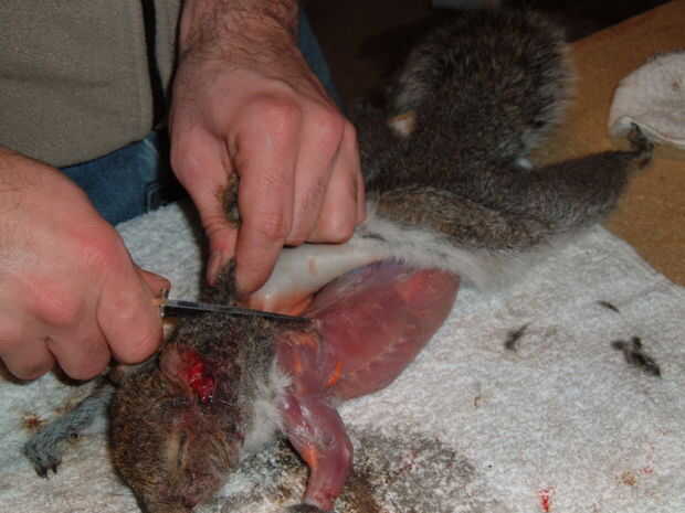 Necesita cortar la piel desde el cuello, debajo de la cabeza para prepararse para el siguiente paso. Cuando haces esto cuenta dedos. No quiero que nadie a quejarse a mí que cortan un apendage.