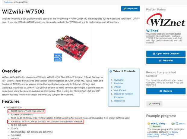Haga clic en WIZwiki-W7500 paltform mbed para.