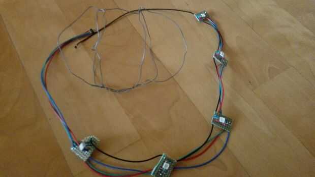 Interior, até leds soldadas en alambre.