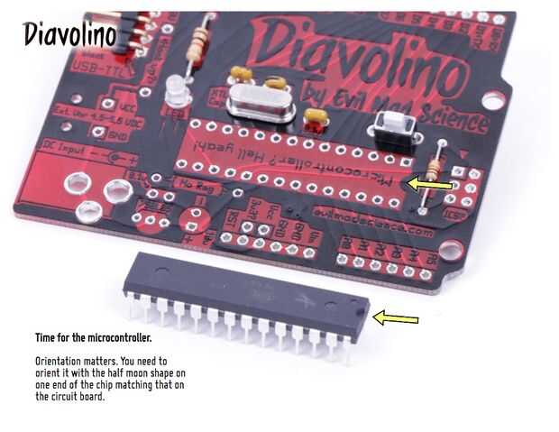 Nu plaats je de IC (chip ATMEGA). DIT es bruisende de het hart van Minicomputadora je!