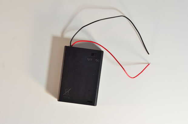 Pak de batterijhouder en voer de draadjes puerta het eerste gaatje zoals aangegeven op de eerste foto. De draadjes steken nu uit aan de bovenkant van het Diavolino.