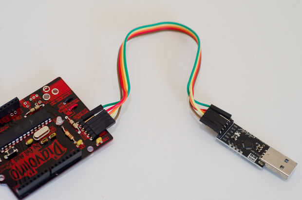 ¿Klaar met het bouwen van je miniordenador eigen? Dan es de descarga stap het aansluiten van de CP2102 adaptador de USB a UART. Hiermee kan je de Diavolino a través de USB-poort op een equipo aansluiten. Je hebt dit puja als je de Diavolini marchitez programmeren via Arduino IDE software op je ordenador.