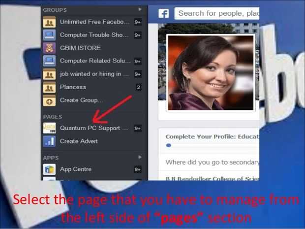 Paso 2: en primer lugar, seleccione la página que tienes que gestionar desde el lado izquierdo de la sección de "páginas"