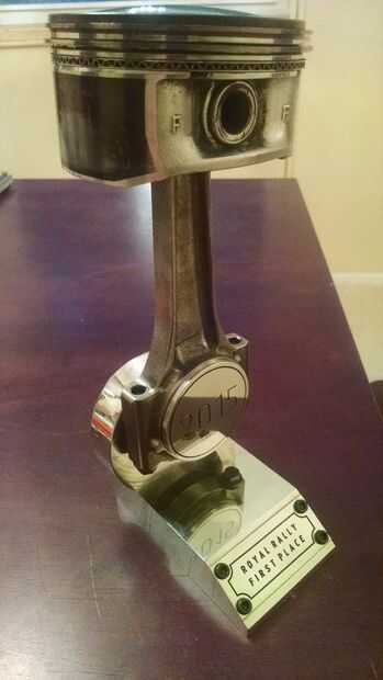 Con la pintura toda seca y limpia, hemos terminado con el trofeo! Esperemos que esto ayudó subir con algunas ideas sobre cómo reciclar un pistón usado para un evento de automóviles en el futuro!