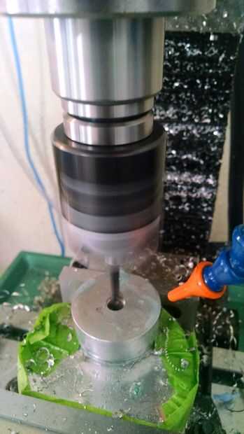 Con el centro de la tapa dada vuelta, necesitaba modificar la "manivela" para acomodar el centro de la tapa. Utilizando una cabeza aburrida y un bar, comenzó hacer agujero 1" de diámetro en la"manivela".