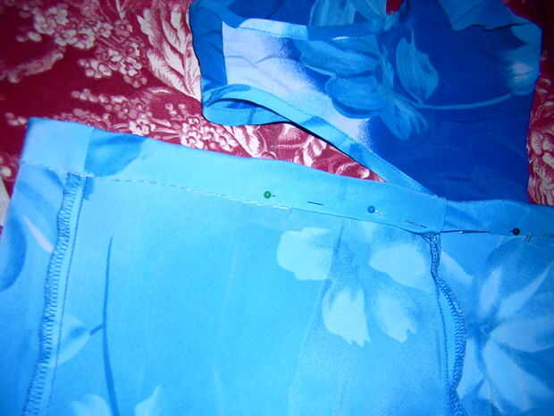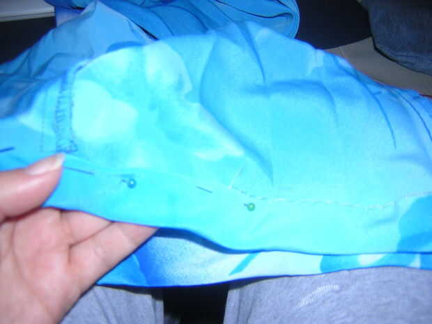 La parte inferior de la tapa alrededor dejando un pequeño espacio para deslizar su elástica a través de la puntada. Mina había cosido abajo con la mano, se puede utilizar una máquina si tienes uno, pero me tomó sólo media hora del comienzo al final para hacer esta falda con la mano. Usted querrá usar un hilo que combina con su falda, mina mezclado tan bien es algo difícil de ver.