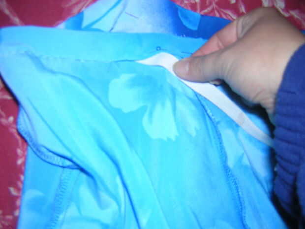 A continuación se. que debe ensartar el elástico a través del túnel hecho de coser la parte superior. Cuando se han roscado completamente a través luego coser juntos sus dos extremos del elástico, meter en la cintura y terminar la costura de la cintura hacia abajo.