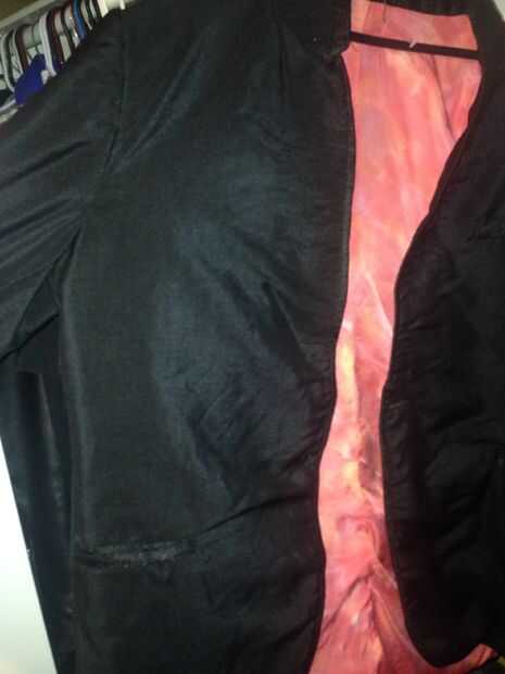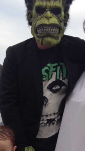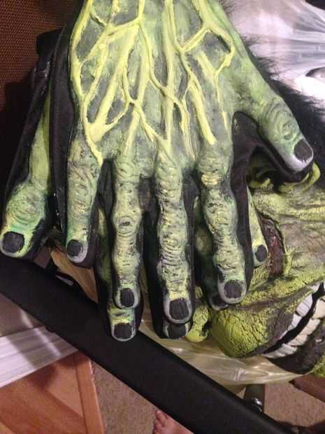 También compró un par barato de manos de zombie gris claro en la tienda de halloween y los repintado w del mismo color de la máscara para que sea más uniforme. Visité la tienda y anotó una chaqueta blazer de 1.00 y unos pantalones negros de 2.00, y llevaba su propia camiseta y listo!
