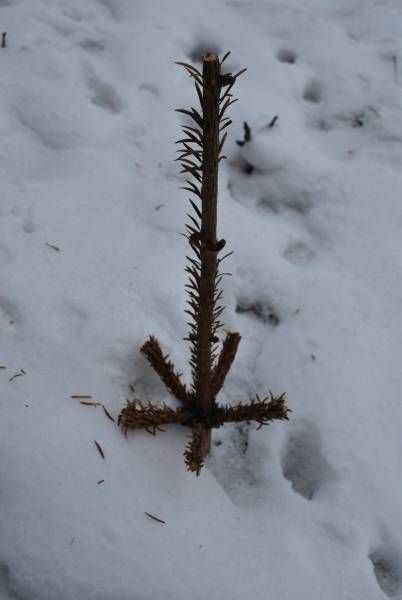 Las agujas y la corteza deben eliminarse de la parte superior del árbol también.
