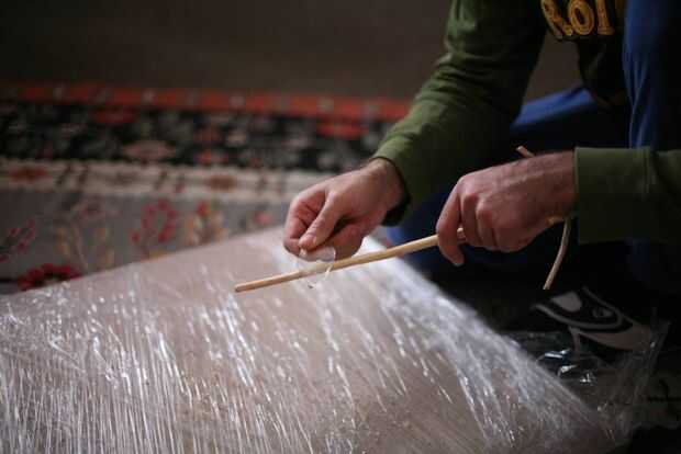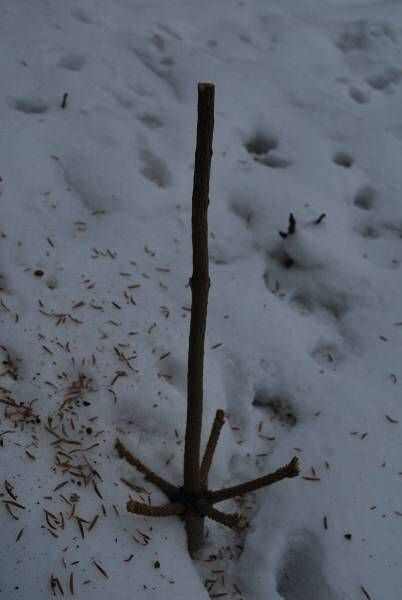 Guardé una botella de cristal del champán año nuevo y freno ahora. Tomé un chip / parte de, elija uno con un borde afilado. Poner el chip en el tronco del árbol y el borde será perpendicular, de esta manera usted puede afeitarse la corteza. O puede utilizar papel de lija, un cuchillo y así sucesivamente. La imagen muestra la forma de afeitarse la corteza - tenga el filo!!!