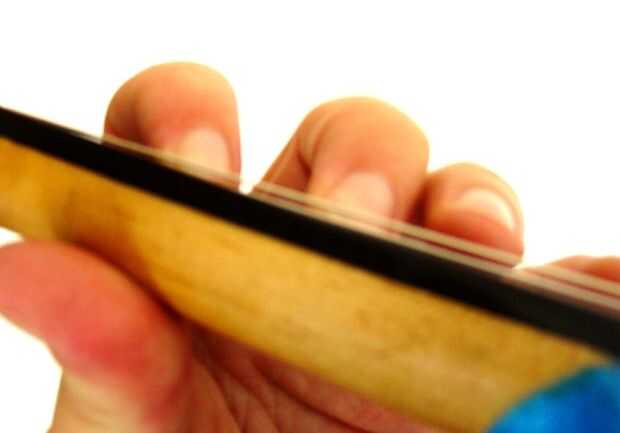 necesita construir los músculos que necesita para empujar hacia abajo las cuerdas. Mantener una clavija de ropa en el bolsillo y en momentos ociosos hacer este ejercicio. No tan lentamente como puede llegar a educar el cerebro y los músculos. Si duel