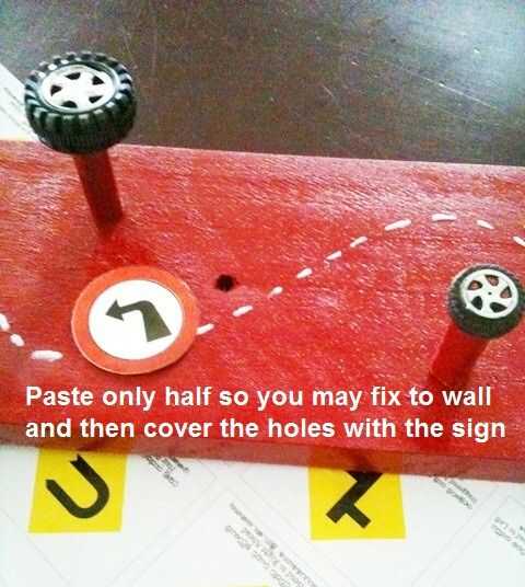 Marque la colocación en el tablón de... .drill y tornillos en los tacos... la pintura.