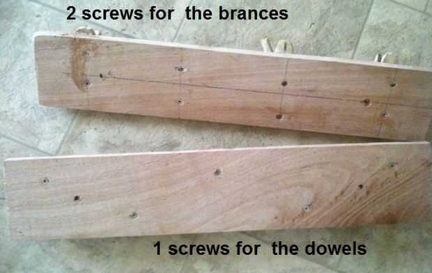 La colocación en el tablón de marcar y taladrar... Usé 2 por rama para que no gire y mueva.