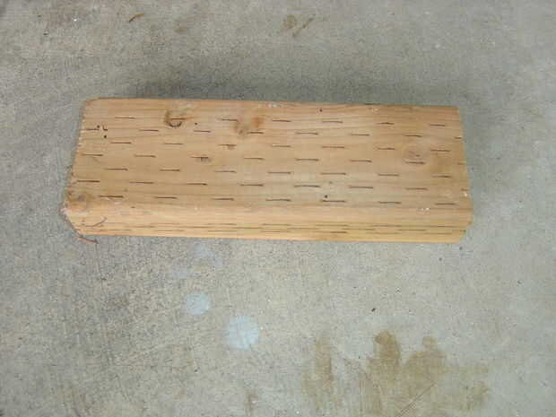 2. Si tienes una chuleta de sierra o un brazo de sierra, cortar una cuña de 6" de madera a 45 grados. Si no, usar una brújula u otro dispositivo para marcar 45 grados sobre la madera y cortarlo a mano.