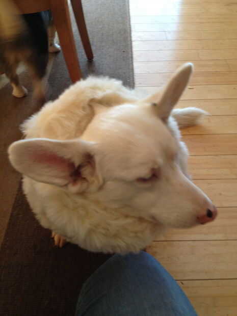 2. ella es corta - se hace el estándar e-collar para perros con patas más largas. El estilo de cono obtiene le enredado.