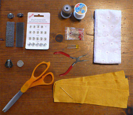- Un sujetador del Metal - nos gusta velcro conductor de LessEmf.com, pero también se pueden utilizar broches monedero de tiendas de artesanía de Michaels o incluso regular coser en metálico se encaja a presión (sólo asegúrese de que no están pintados o recubiertos).