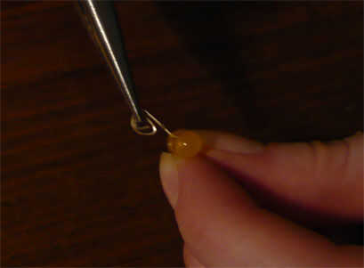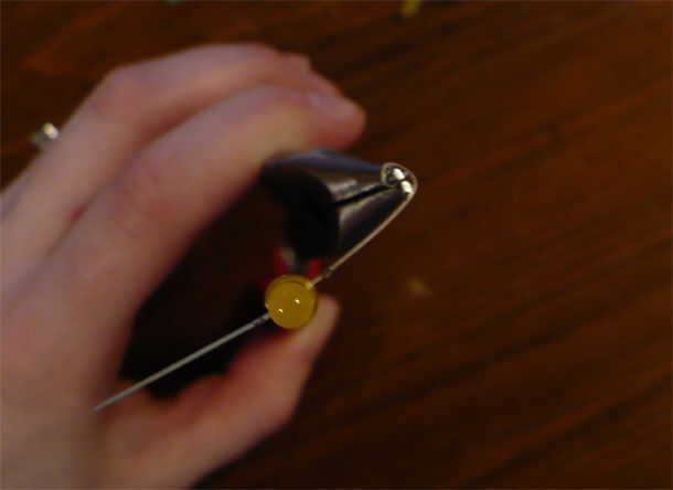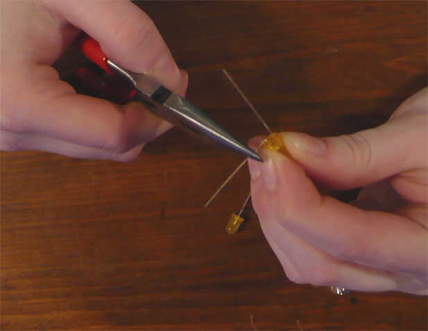 Entonces agarra un asimiento en el extremo de un cable y gire en un pequeño bucle. Espiral alrededor hasta que es casi todo el camino a la bombilla (dejamos las habitaciones un poco sobre la abolladura en el plomo).