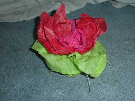 Tomé tres colores: rosa, rojo y verde y apilados unos a otros, agrupados en la parte superior y luego la ató con una cuerda de cáñamo. Estaba tratando de hacer que se vea como una flor desde mi baño son color de rosa con aroma.