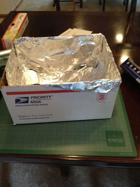 Tomar el papel de aluminio y poner el lado opaco hacia arriba. Utilizar alguna cinta para sostenerla en lugar.