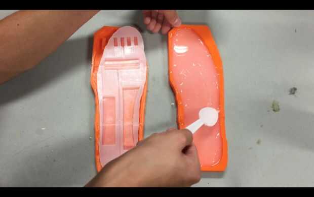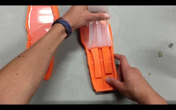 Tire con cuidado el molde con las cámaras de aire en el molde pellizcando uno de los extremos y tirando. Luego, mezclar una pequeña cantidad de silicona y extender una capa muy fina sobre el elenco que todavía está en el otro molde. Esta capa debe ser sólo sobre un milímetro de alto. Luego, tomar el elenco que usted sólo demolded y coloque con suavidad de la silicona no curada en el otro molde. No aplique ningún tipo de presión. Deje que esta cura durante cuatro horas.