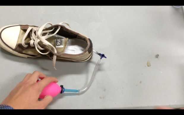 Ahora listo! Para utilizar la plantilla, te recomiendo poner el zapato con ella desinflado, entonces inflado mientras el zapato es en. Feliz caminar!