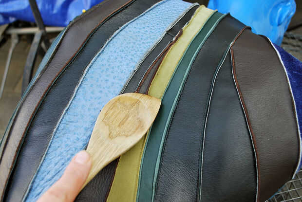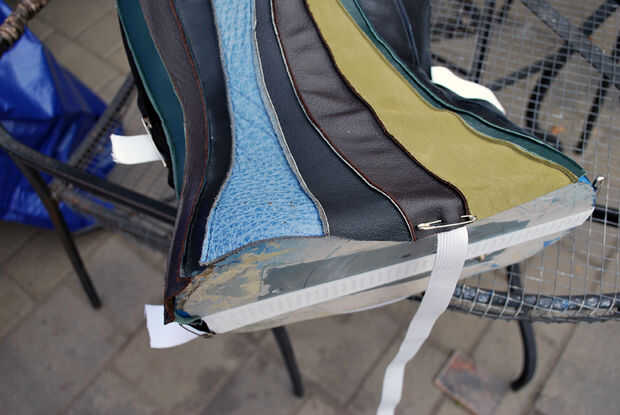 Excelente. Hice una pasada final con la cuchara de madera para alisar las costuras y restó cualquier bit de polvo de cuero. La parte posterior podría sentarse en la forma y acabado extendiéndose mientras preparaba para los próximos pasos.