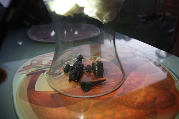 Poner sus piezas a alisarse en el vidrio tajadera y espacio ellos para que no toquen unos a otros, y aún así cabe debajo del jarrón.