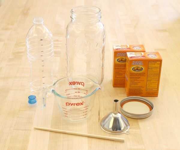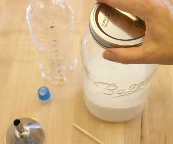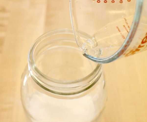 Agregar las 3 tazas de bicarbonato de sodio en un gran tarro de masón. Mida 2 tazas de agua tibia y agregue 10 gotas de aceite de lavanda al agua. Añadir el aceite o agua a la jarra. Utilizar una cuchara de madera o palillos para hacer revuelo inicial rápido de la mezcla. Será clumpy y difícil de remover hasta el fondo, así que enroscar firmemente la tapa de la jarra y agite la mezcla hasta que se disuelva la sosa.