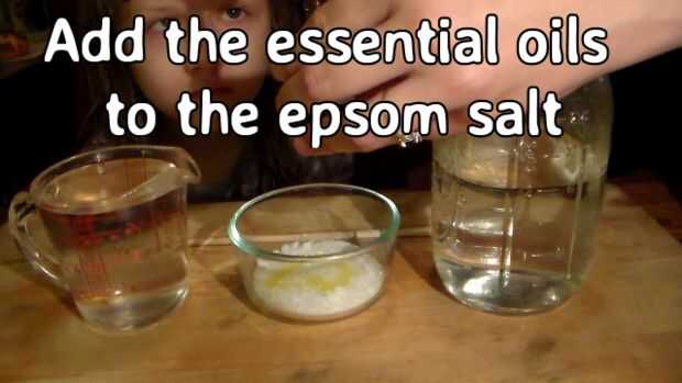 Añadir aceites esenciales a la sal de epsom y revuelva.