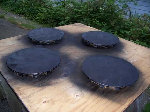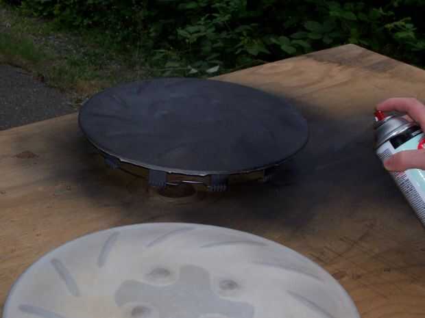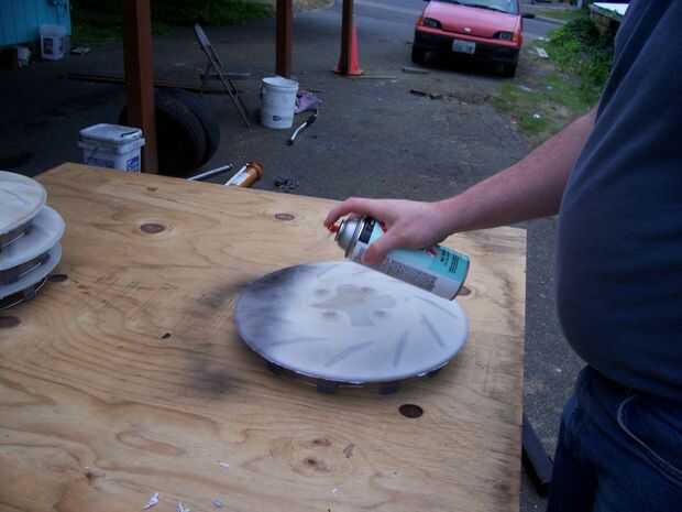 Después de agitar bien la lata, manténgalo cerca de ocho pulgadas de la cubierta de la rueda y usando un movimiento de barrido de lado a lado. Este es un gran proyecto para practicar su técnica de pintura. Permita que las cubiertas secar, luego instalar en su coche.