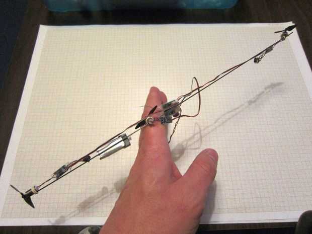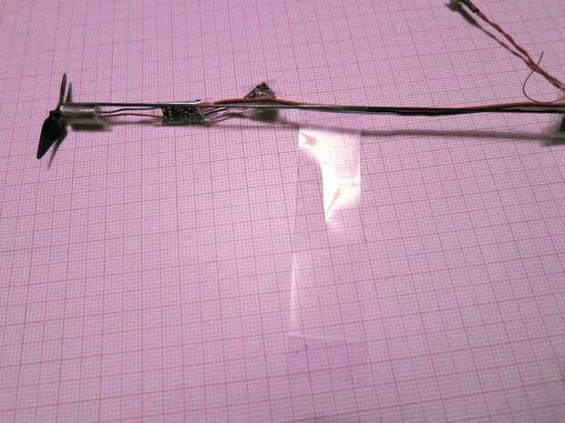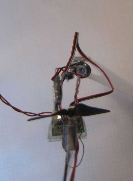 El tercer motor se monta cerca del centro de gravedad de la Asamblea, apuntando hacia abajo. Poner en la hélice hacia atrás como usted quiere en su mejor rendimiento cuando elevando el dirigible.