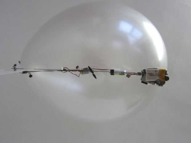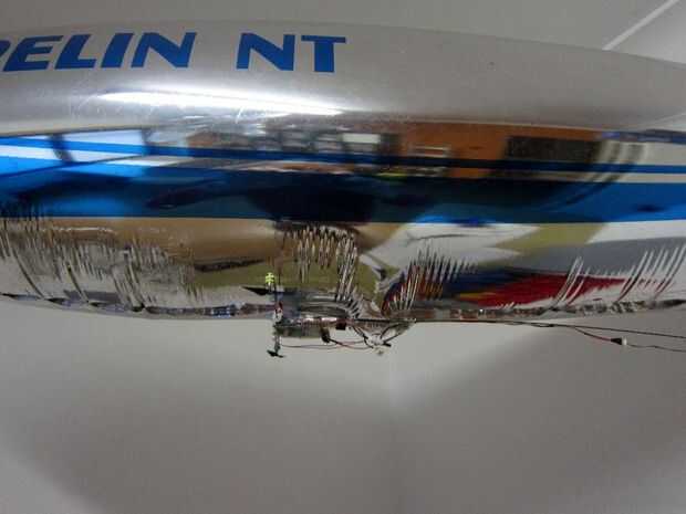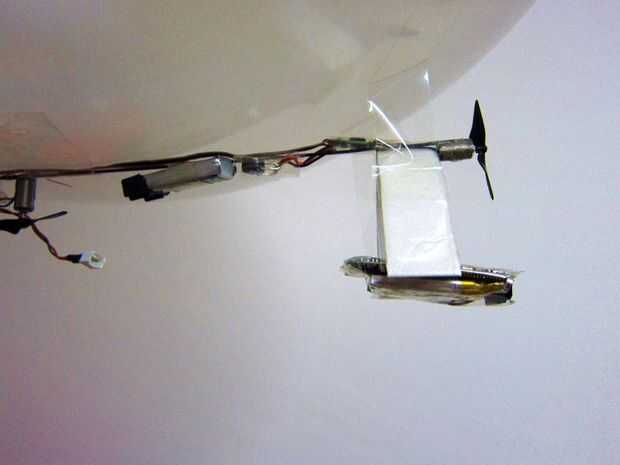 Una tira doblada de Depron fue grabada con la cámara que se cuelga bajo el motor delantero.