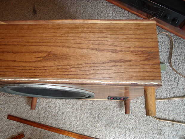 Cuando estaban secos les pegué a los tableros superior e inferior de pino, con un labio de 1/4" sobre la parte superior del tablero y abajo del tablero inferior. Este labio de 1/4" en la parte superior mantiene el cojín en su lugar, y el labio inferior elimina el altavoz de la vista.