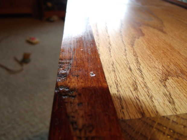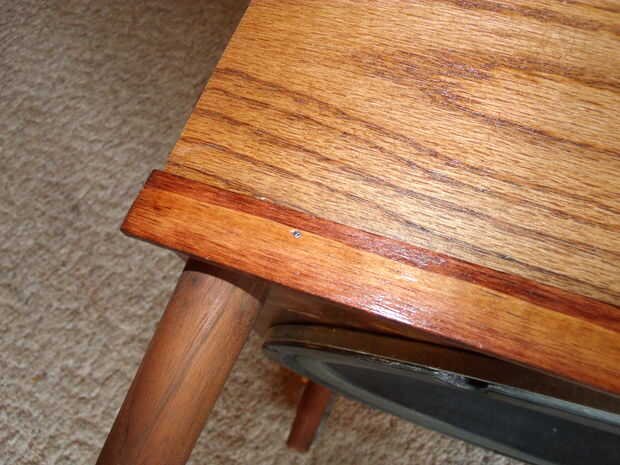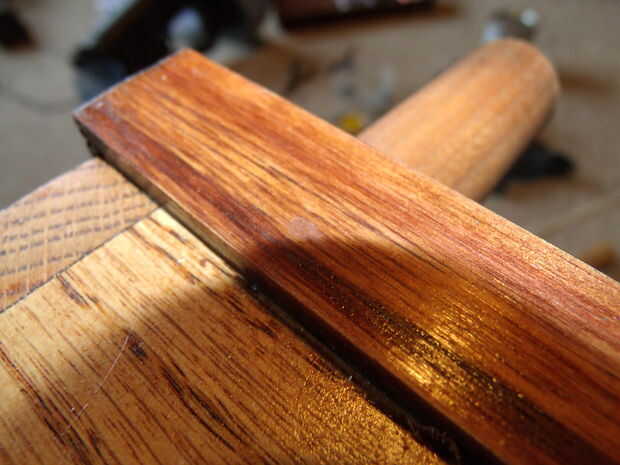 Para apoyar estas tiras a la caja, puse unos clavos de acabado en ellos. Con un clavo me puso debajo de la superficie de la madera y luego llena los huecos con masilla de madera coloreado un poco.