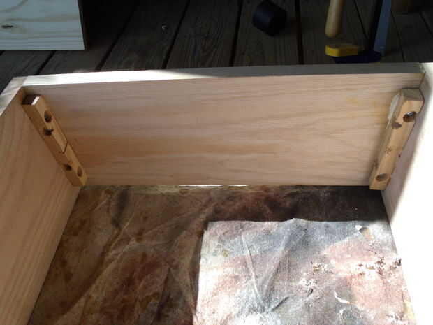 Después corté las piezas superior e inferior hacia fuera, fui por delante y pegado en la parte superior de la caja. Cuando que estaba seco, yo otra vez pegados y atornillados en algunas tiras de 1 "x 1" para reforzar la conexión. Una caja del altavoz debe ser muy rugoso.