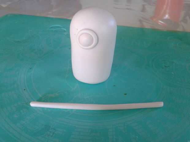 Elegí a un súbdito Tuerto. Para hacer que el globo ocular, rodar una pequeña bola de arcilla y presiona sobre el cuerpo. Para las gafas, rollo una salchicha pequeña, libremente envuélvalo alrededor del ojo para probar la longitud, corte a la longitud adecuada y mezcla de los dos extremos con los dedos. Envuelva alrededor de los ojos otra vez y presione ligeramente para que se la pega. Creo que esta forma da un resultado más limpio que mezcla directamente sobre la pieza de trabajo. Repita lo anterior si haces dos ojos. A continuación, una salchicha más grande del rodillo, envuélvalo alrededor de la cabeza y corte el sobrante. Después presiónelo suavemente para que sea más plana.