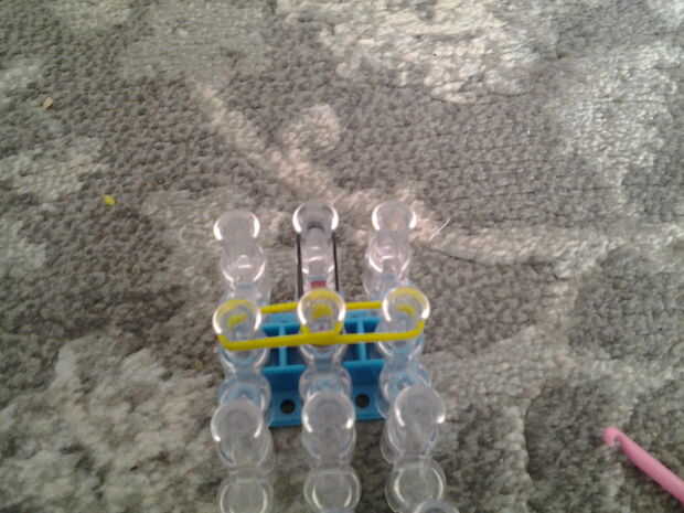 este es mi primer instructable diciéndote cómo hacer una pulsera de telar del arco iris triple.Paso 1: fuentes de Usted tendrá tablero de telar del arco iris, bandas y el gancho.Paso 2: Tres filas de bandas Poner tres filas en el telar como mostré ar