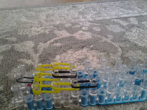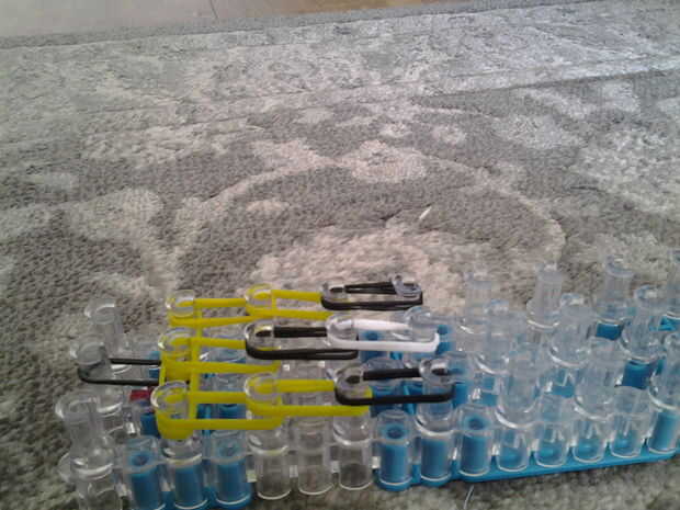 Paso 1: fuentes de Necesita un kit de inicio para el telar del arco iris y algunas elásticas.Paso 2: Colocar las bandas Iniciar colocando un color de borde y no empezar a poner encima de todo lo que tienes que hacer en los patrones.Paso 3: Colocar la